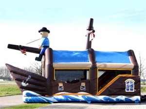 Lil Pirates,Inflatable Priate Boat,Inflatable Pirate Ship. This kind of Pirate Inflatables are our best looking bounce house slide combo moonwalk. This happens to be our newest and may be our funnest! A lot of space inside this bounce slide combo that even has a slide and obstacle courses inside of it! The perfect jumping bounce slide combo moonwalk for any tropical themed party!
