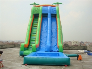 Super Inflatable Tropical Water Slide, This tropical water slide decorated with palm trees, and the 8.3m height create a high speed for rider when splash into the water pool. A extreme water fun game for kids in hot summer day.