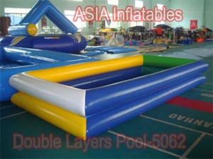 Inflatable Pool is usually made by the material of the thickness from 0.6mm to 0.9mm polyester fiber double deck PVC tarpaulin, which is waterproof, high strength, high density and fire resistant.