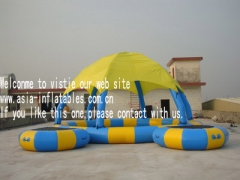 Inflatable Pool is usually made by the material of the thickness from 0.65mm to 0.9mm polyester fiber double deck PVC tarpaulin, which is waterproof, high strength, high density and fire resistant.