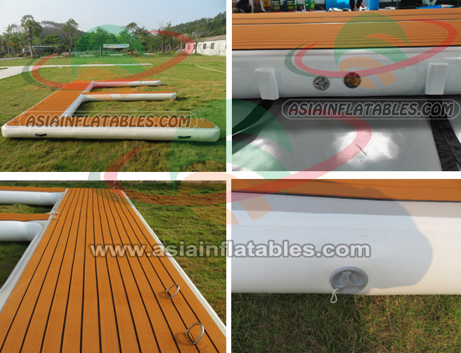 E Shape Wood Grain Motor Boat Station Inflatable Jet Ski Floating Water Platform