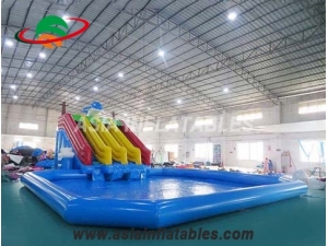 Inflatable Water Playground is one of the newest designs from ASIA Inflatables. The size of the pool can be made by the size of Diameter 16m, 20m, 25m, etc, which means the pool can contain 60 to 250 kids to enjoy fun and cool in the larger pool at the same time. The exciting and amazing water park offers excitement to kids when they climb on the top of the slide and ride down to the pool speedily from one of the slides. Small games in the pool will make the park more funny and popular.