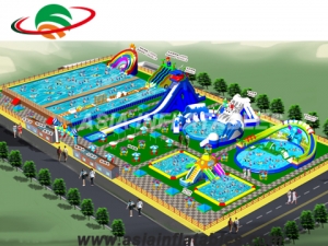 Inflatable Water Playground is one of the newest designs from ASIA Inflatables. The size of the pool can be made from 1 m2 to 20000 m2, which means that the pool can contain 1 to 25000 kids to enjoy fun and cool in the larger pool at the same time. The exciting and amazing water park offers excitement to kids when they climb on the top of the slide and ride down to the pool speedily from one of the slides. Small games in the pool will make the park more funny and popular.