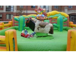 This Realistic Mechanical Rodeo Bull is sure to bring loads of excitement to your event! Our mechanical bull is engineered with the most current safety innovations available in the industry today, including a padded inflatable arena and a variety of preset speeds to accommodate both beginner and expert riders.