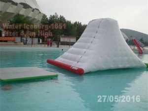 Aqua Run Challenge Inflatable Water Iceberg & Floating Platform Item No.: Water Iceberg-1651 Size: 4.8mH, with Flaoting Platform 4.5mLx3.5mW Material: 0.9mm PVC tarpaulin. high durability, UV-Resistance, fire resistant, waterproof, Color: white, blue or customized. Air Pump: 1 piece 700W, CE/UL Accessories: repair kits, CE/UL air pump, anchors, glue, matching materials. MOQ: 1 unit Warranty: 3 years