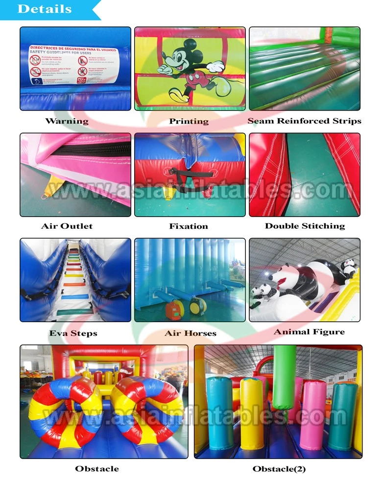 Inflatable Obstacle Course is a combination of all kinds of super fun giant inflatable obstacles, It is made up of multi-colored PVC tarpaulin structure that make the whole project more interesting and entertaining. And It can be widely put in some open outdoor occasion like parks, squares, exercise centers, or some other playing centers etc; People will enjoy themselves in this fun world.